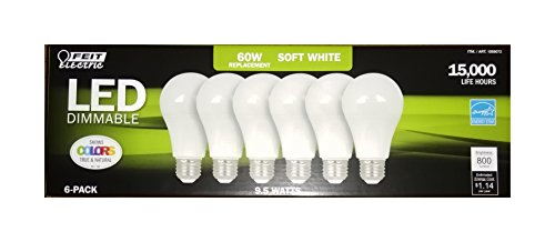 Feit Electric 6 Pack of LED Dimmable 60 Watt/9.5 Watt Replacement Soft White A19 (standard style) Bulb