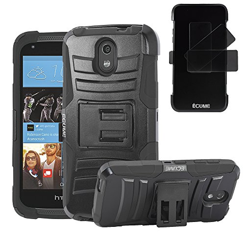 HTC 526 Case, ECUME Duo Layer Armor Protective Cover Case with Stand, Belt Clip & Holster for HTC Desire 526 [Verizon] - Black