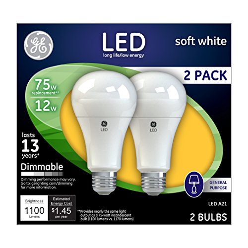 GE Lighting 65943 LED A21 Light Bulb with Medium Base, 14-Watt, Soft White, 2-Pack
