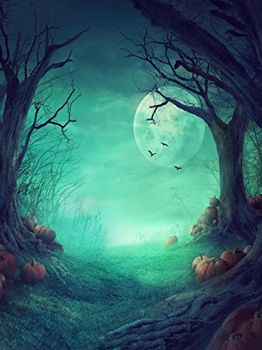 L2G 5ftX6.5ft (150cmX200cm)Halloween Children Photography Background Photo Backdrops Outdoor The Ghost Trees With Pumpkins Props for Studio