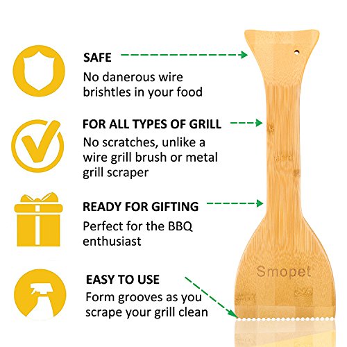 ★UNIQUE DESIGN and MORE EFFECTIVE: Designed for cleaning top and IN BETWEEN of grates. The bamboo will form grooves unique to your grill pattern for easy to use. The Ergonomic Design handle is comfortable to use and keeps you far away from grill heat. The grill scraper combines 3 tools into one, convenient and saving money.