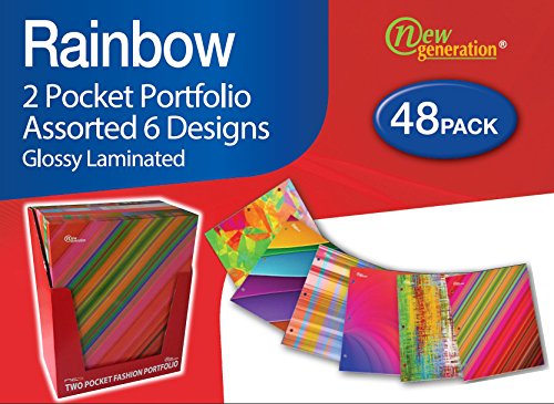 -. Title : New Generation - Rainbow - 2 Pocket Folder Heavy Duty 3 Hole Punch - 48 Folders per Pack in Display Box Assorted 6 Fashion Designs UV Glossy Laminated
