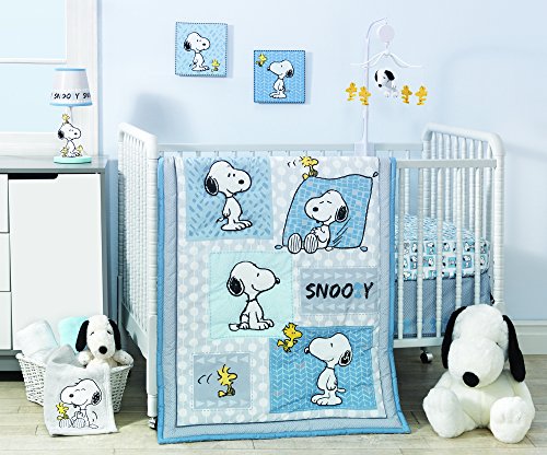 ReleaseDate : 2017-01-24 Studio : Bedtime Originals Publisher : Bedtime Originals Binding : Baby Product Product Description Our precious little beagle Snoopy is available in a trendy color palette of blues, gray, white and a touch of yellow. Of course his best pal Woodstock is always by his side. An array of modern patterns, silhouettes, polka dots and circles add to the charm. In addition, a "grow with me" lamp, musical mobile, soft, cuddly appliqued blanket and two-piece wall decor complete this fun filled nursery collection. 0