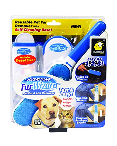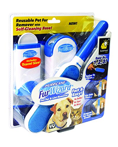 Studio : BulbHead Publisher : BulbHead Binding : Misc. Product Description Hurricane Fur Wizard is the easiest way to remove messy fur, hair, lint and fuzz from any surface like clothes, furniture, carpeting and car seats. The secret to this extra-large, double-sided brush is the thousands of micro-bristles that grab and remove every last spec of furry mess. It works way better than those old-fashioned paper rollers, and with its handy, self-cleaning base, the debris on both sides of the brush is removed in a snap. 0