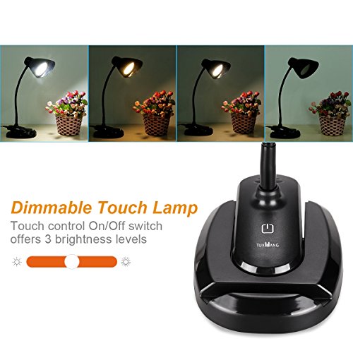 TUXWANG LED Desk Lamp Eye Caring Touch Control 3 Lighting Modes Table Reading Light with Phone Stand Holder, 2-in-1 Stand on Own & Clip Everywhere, USB Charging, 3W