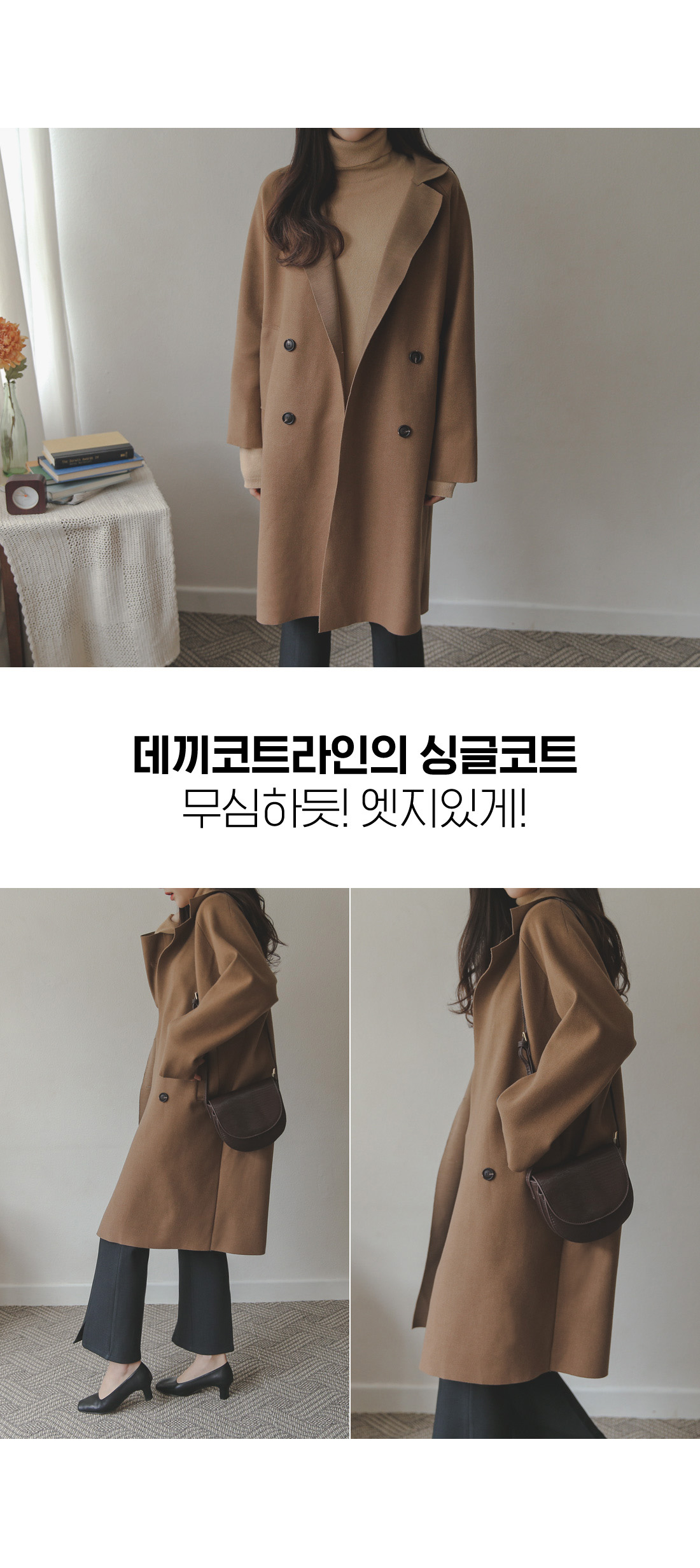 포근히 몸을 감싸지는 롱한 기장감에 싱글버튼디자인으로