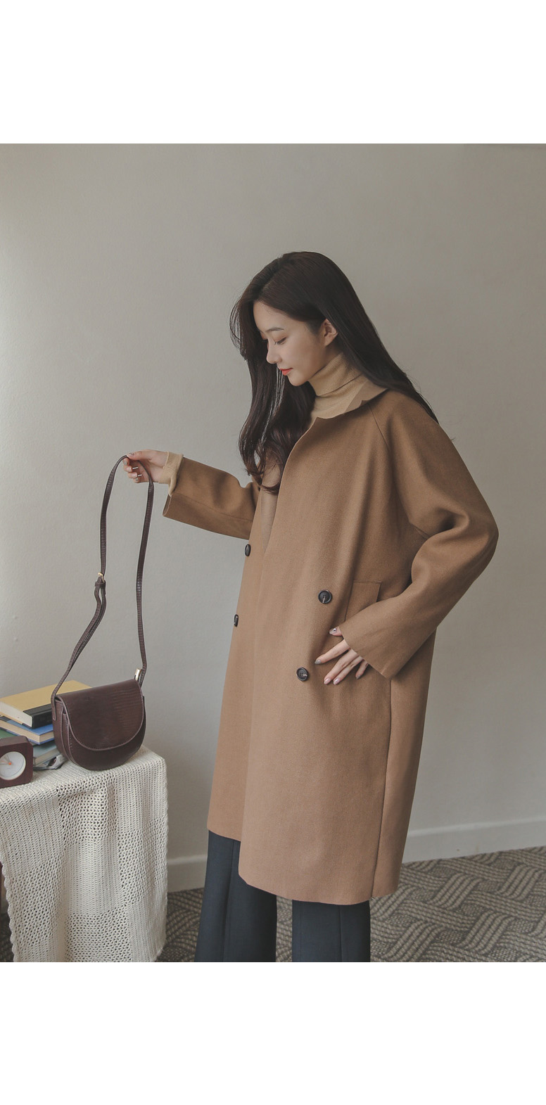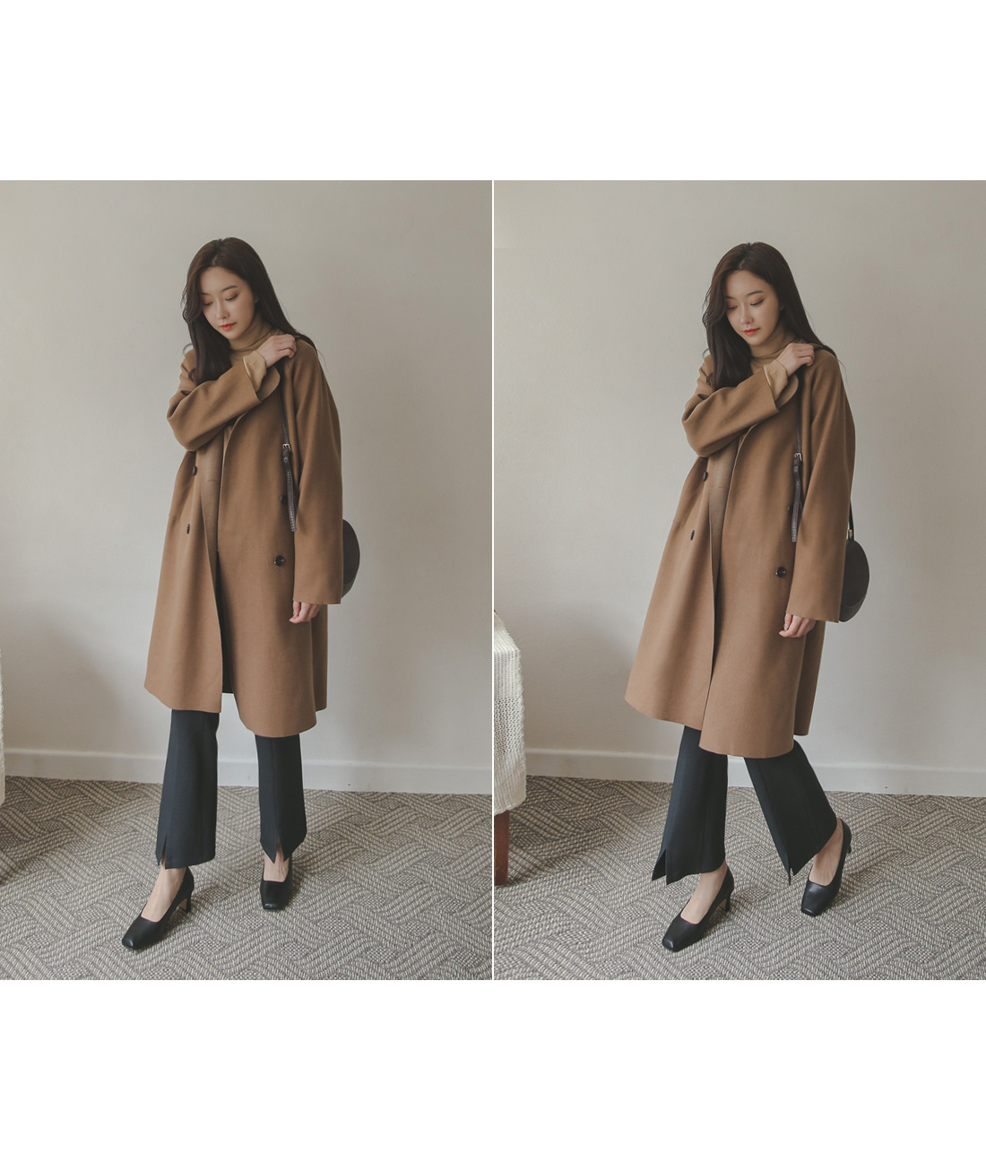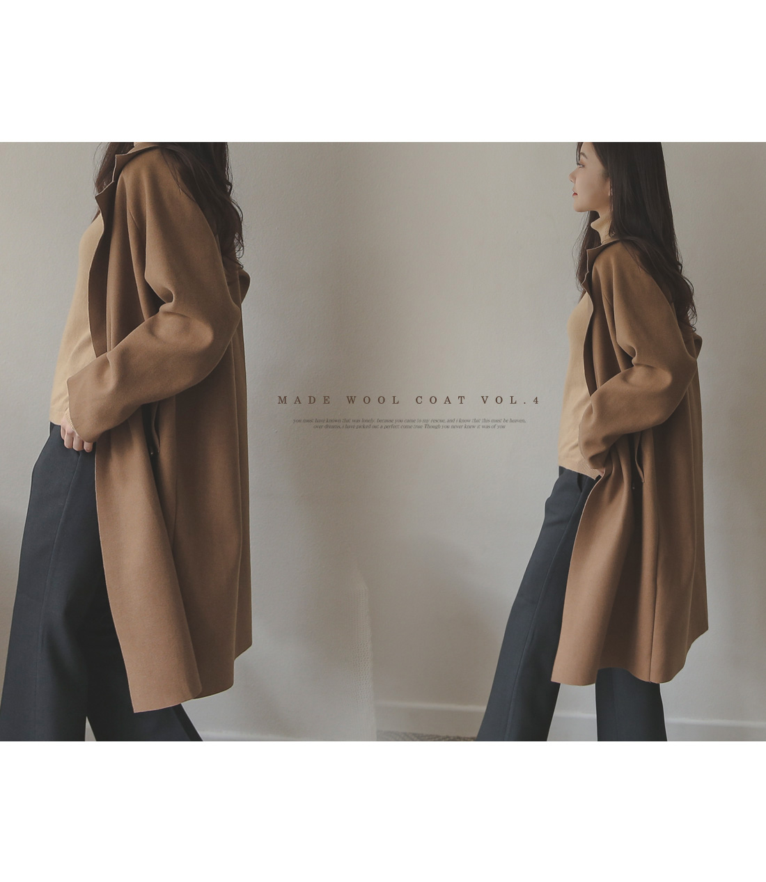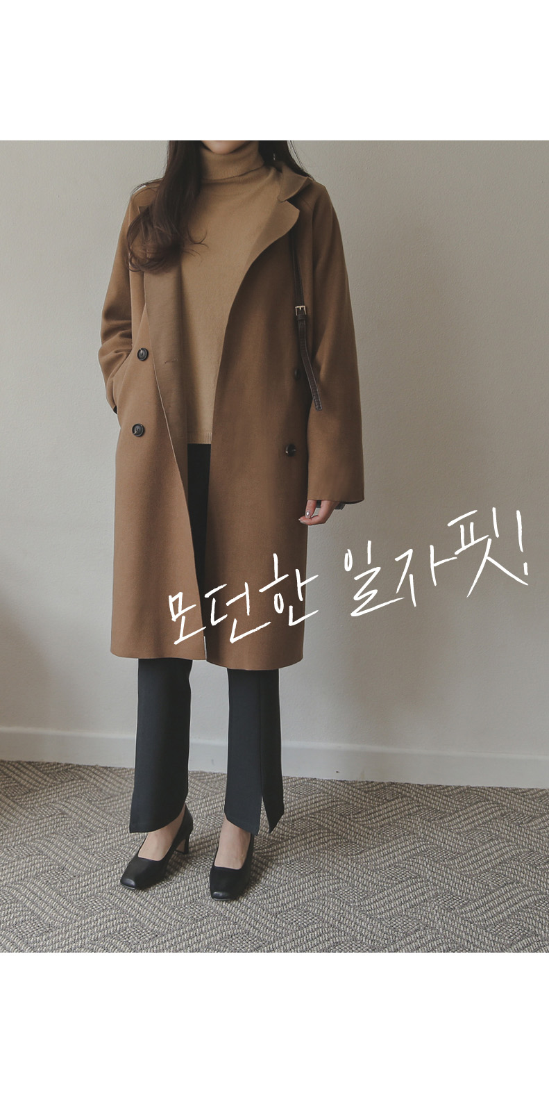 깔끔하면서 내추럴한 분위기를 선사해주는 울코트 입니다
