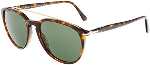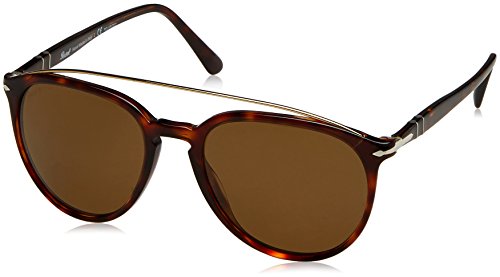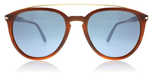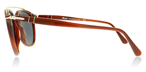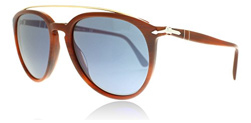Persol PO3159SPersol keep it classy with another strong design in their signature logo. The lightweight metal brow bar gives a masculine finish to the glasses and changes up the look for a more dimensional style. As always Persol benefit from the Meflecto temples that are extremely comfortable and eliminate the pressure on your head, you can wear these all day every day. This frame comes with a 2 year warranty.Colour code: 904656Colour: Striped BrownLens category: 3