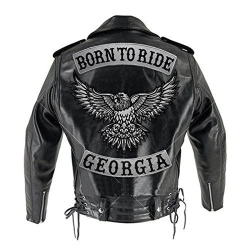 -. Title : GEORGIA REFLECTIVE EMBROIDERED IRON-ON DECORATIVE PATCH BIKER JACKET RIDER VEST LOW ROCKER 12"