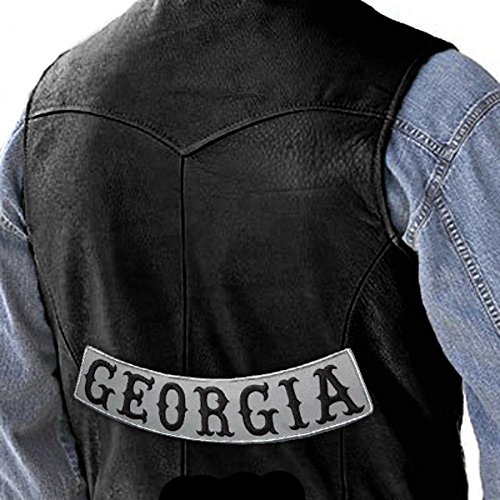 -. Feature : GEORGIA PATCH / BIKER JACKET LOW ROCKER / LIGHT REFLECTIVE MATERIAL / EMBROIDERED IRON-ON DECORATIVE PATCH / APPAREL EMBROIDERY APPLIQUE PATCH 12"L x 2.5"W