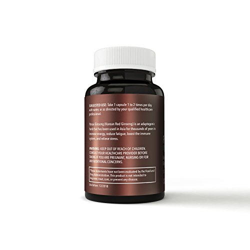 VEGAN - No additives, fillers or preservatives just pure Korean Red Ginseng. Made without any wheat, gluten, soybeans, dairy, egg, fish, peanuts/tree nuts. Certified non-GMO, Gluten Free formula Made in an FDA inspected and GMP certified manufacturing facility in the USA. Our Veggie 00 Capsules mean no animal products or animal by products are used period. We love animals and the planet too!