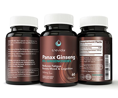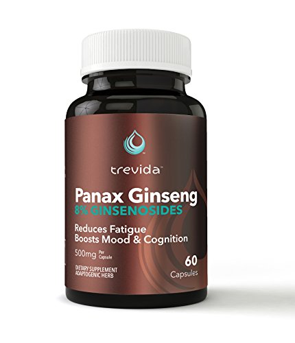 Trevida Panax Ginseng, Korean Ginseng Root Extract, High Potency 8% Ginsenosides, Vegan 60 Capsules, No Additives