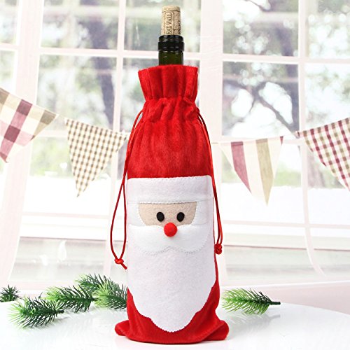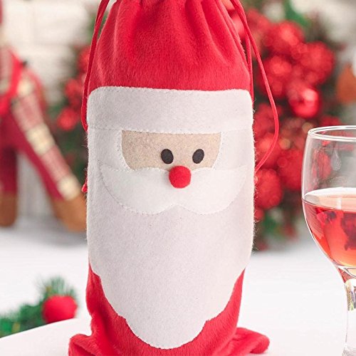 Jentay Santa Claus Christmas Drawstring Red Wine Bottle Cover Bags Dinner Party Table Decor Xmas Gift