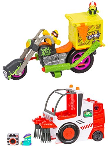 -. Binding : Toy -. Brand : Grossery Gang -. EAN : 0631907213158 -. Feature : ✔ Includes Grossery Gang Street Sweeper and Delivery Strike Motorbike playsets / ★ Package will include our exclusive sticker / ✔ Comes with 4 exclusive grosseries (2 in each) / ★ Flick the fender missiles for long range attacks! / ✔ Trunk pops open when the street sweeper hits an object. -. IsAdultProduct : 0 -. Label : Grossery Gang -. Manufacturer : Grossery Gang -. ProductGroup : Toy -. ProductTypeName : TOYS_AND_GAMES -. Publisher : Grossery Gang -. Studio : Grossery Gang -. Title : Grossery Gang S3 Street Sweeper Playset AND Delivery Strike Motorbike - Series 3 Putrid Power vs Clean Team -. UPC : 631907213158