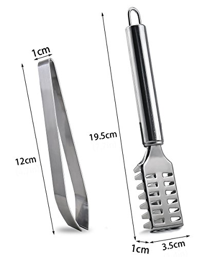 - High quality of material: Our fish bone tweezer and fish scale brush are well made by premium stainless steel, which is hard and corrosion resistant, free rust and durable, to prolong the span life.