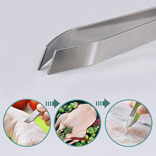 - SMART REMOVER FOR FISHBONE: Fish bone plier is perfect for removing the fish bone, including raw fish and cooked fish, also picking the feather of chicken and duck and so on, a smart assistant in the Kitchen.
