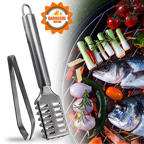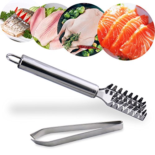 Joyoldelf Fish Bone Tweezer & Fish Scale Skin Remover, Stainless Steel Plier and Fishbone Picker Puller Fish Descaler Perfect for Salmon, Bass, Catfish, Meat and Chicken