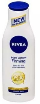 -. Binding : Misc. -. Brand : Nivea -. EAN : 0791617296824 -. Feature : Q10 is a natural component of your skin which actively works to keep it firm / NIVEA® Firming Body Lotion enriches the natural levels of Q10 empowering your skin with the energy and strength it needs to remain toned and supple / Visibly firmer and tighter skin in 2 weeks with Firming Body Lotion Q10 Plus. -. IsAdultProduct : 0 -. Label : NIVEA -. Manufacturer : NIVEA -. MPN : NIVEA-36 -. PackageQuantity : 1 -. PartNumber : NIVEA-36 -. ProductGroup : Beauty -. ProductTypeName : BEAUTY -. Publisher : NIVEA -. Studio : NIVEA -. Title : Nivea Q10 Firming Body Lotion, 250 ml -. UPC : 791617296824