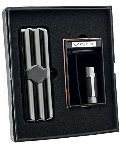 Visol "Volker" and "Kompano" Cigar Case and Lighter Gift Set