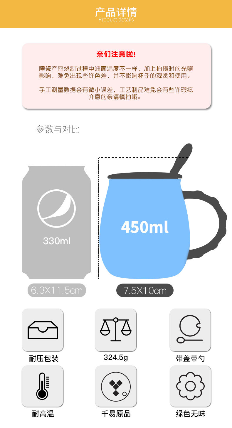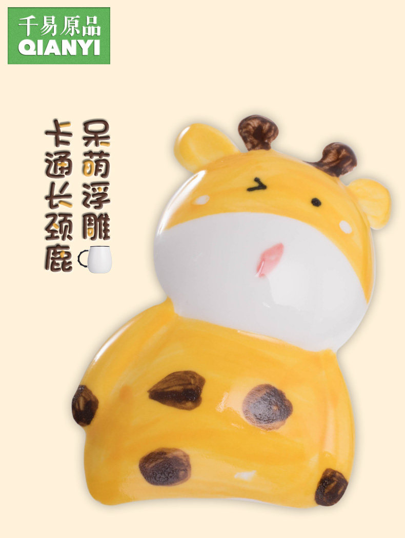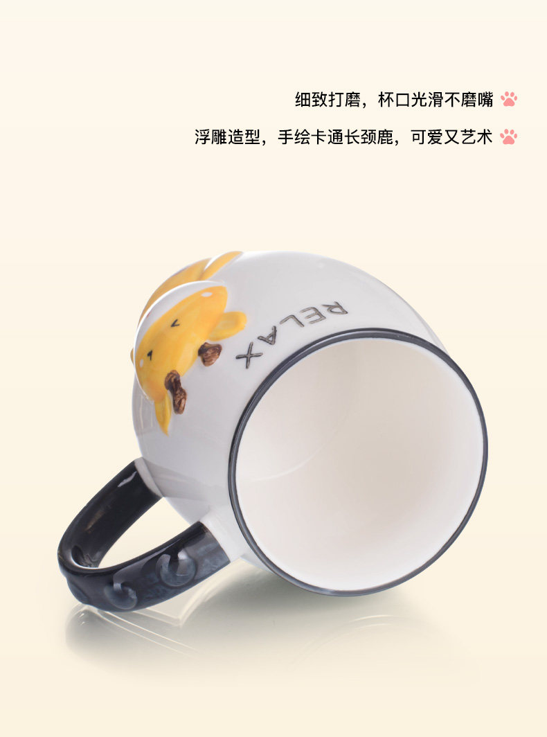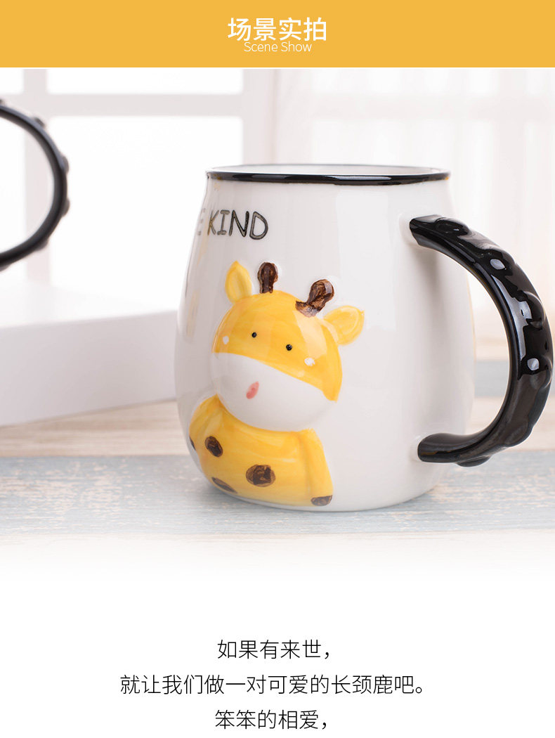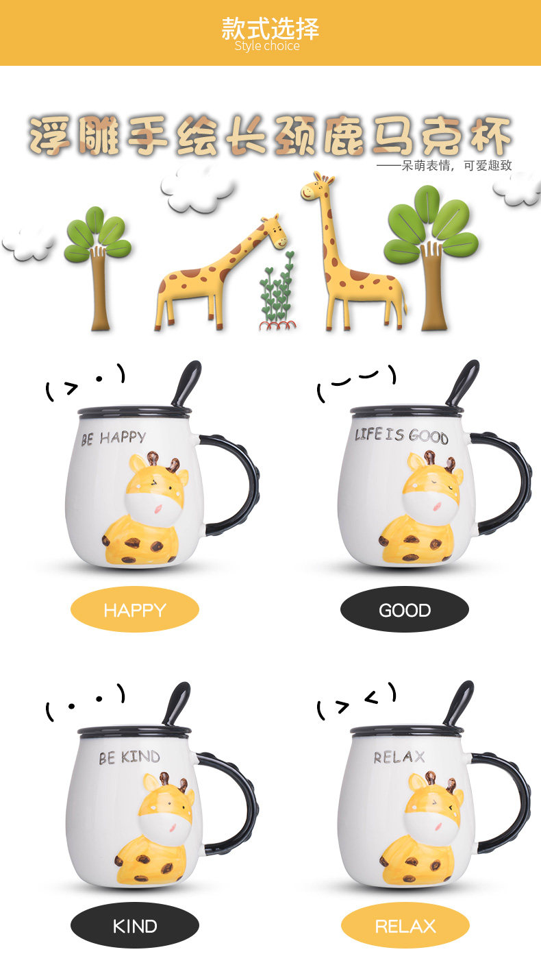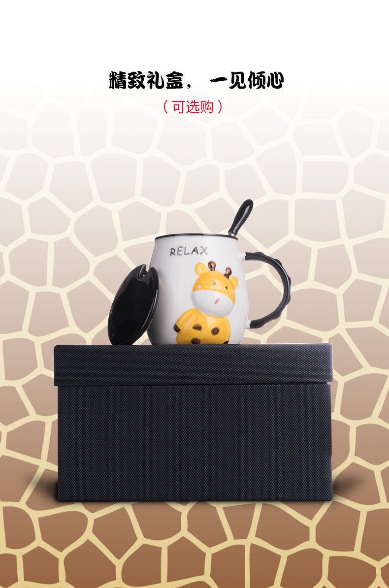 创意卡通长颈鹿动物杯陶瓷咖啡杯子马克杯带盖勺早餐牛奶杯喝水
