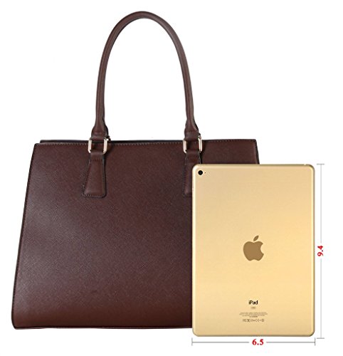 -. Feature : This handbag comes in 5 different colors: Black, Brown, Coffee, Khaki, and Red. / High Quality Saffiano PU Leather Concise Design Large Structured Tote Womens Purse Handbag. / High Quality Fabric Lined Interior with Multiple Interior Pockets. 2 Compartments separated by 1 Center Divider Zipper Pocket. 1 Large Pocket Inside with Zipper and Pockets on Both Side. 1 Zippered Pocket Outside in the Back. / Approximate Size info: Length 15" x Width 6" x Height 10.4" Material: PU Faux Leather. Top Zipper Closure. / Color showing in other color is to show the different variation angles of the handbag. The actual bag ship, will be the one your purchesed.