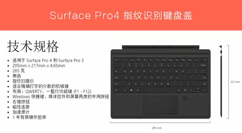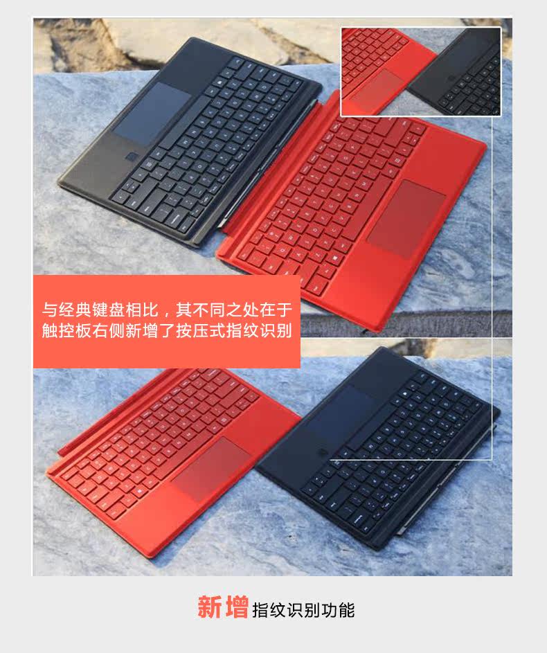 微软Surface Pro4/3键盘原装特制版专业键盘盖欧缔兰灰色指纹识别