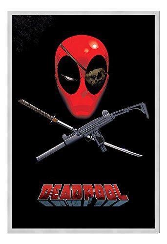 -. Title : Deadpool Eyepatch Poster Magnetic Notice Board Silver Framed - 96.5 x 66 cms (Approx 38 x 26 inches)