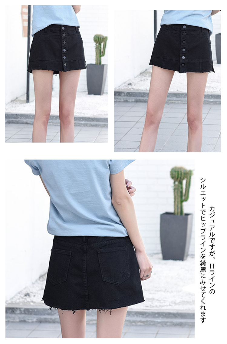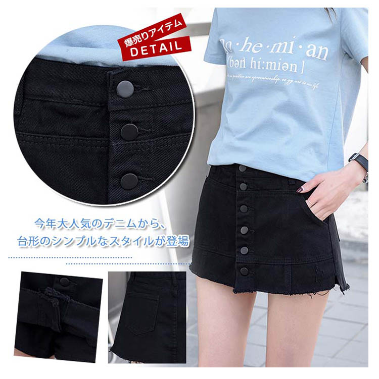 | 今年大人気のデニムから、台形のシンプルなスタイルが登場カジュアルですが、Hラインのシルエットでヒップラインを綺麗にみせてくれますブラウスと合わせれば女性らしく、Tシャツと合わせればカジュアルスタイルに | |