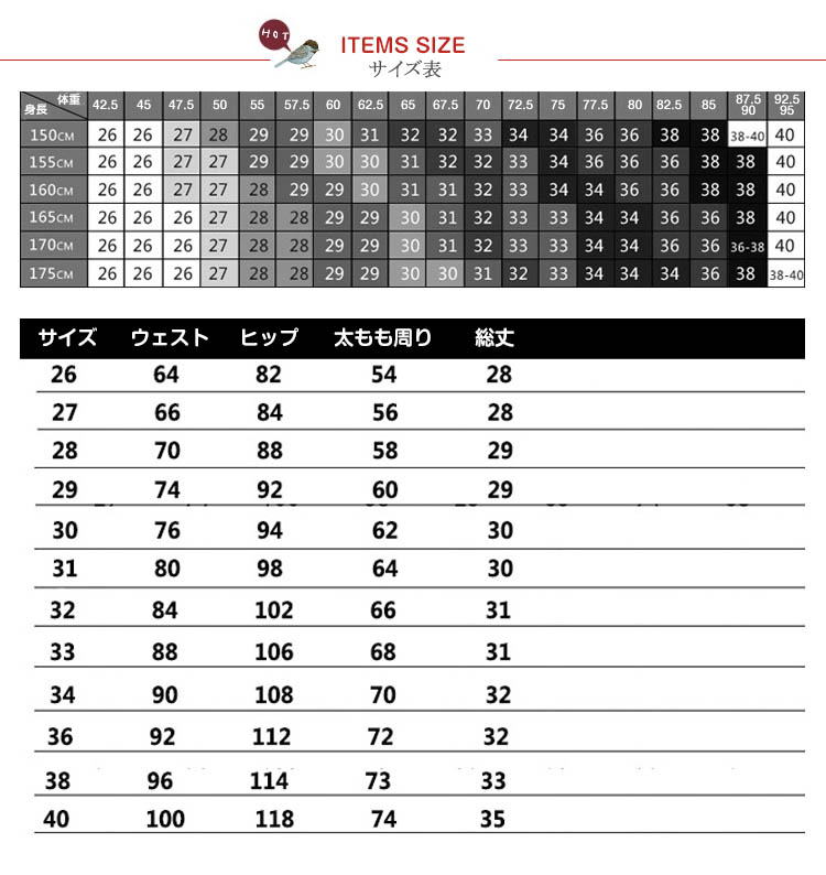 | サイズ | 26 27 28 29 30 31 32 33 34 36 38 40 |