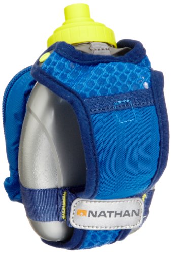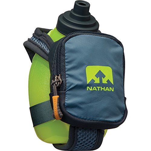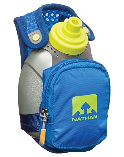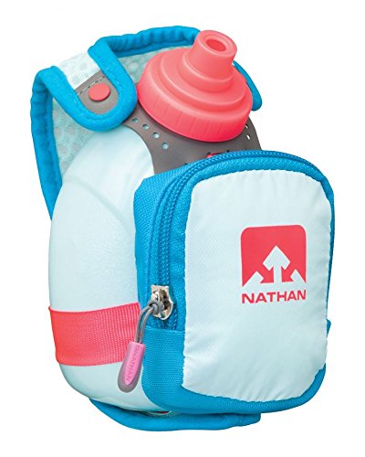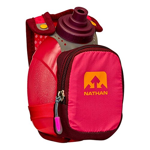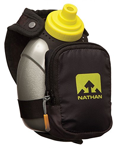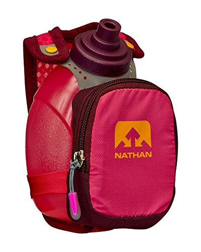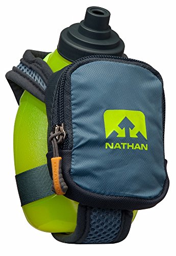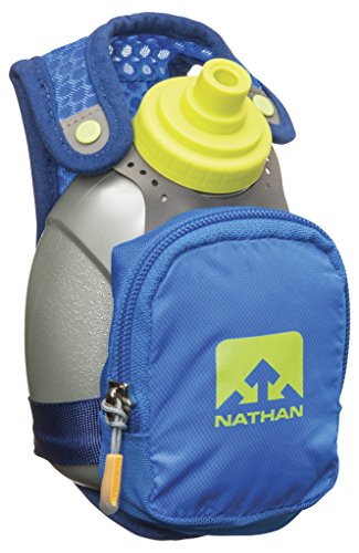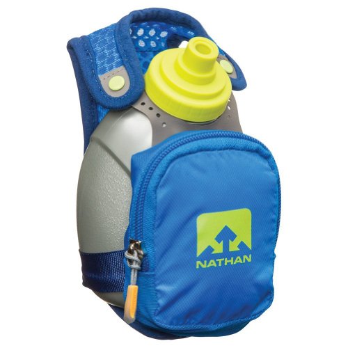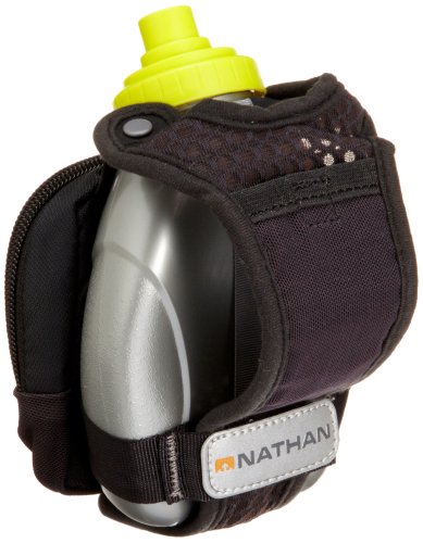 Product Description FEATURES of the Nathan QuickShot Plus Hydration Handheld 10 oz / 300 ml Flask with Race Cap offers quick bursts of fluid for short distances Keep hands relaxed with adjustable hand strap and thumbhole Expandable, zippered pocket offers a surprising amount of storage 0