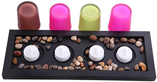 Juvale 13.4x5x1-Inch Flameless Candle Decoration with Stand and Rock Accents 5-Piece Set