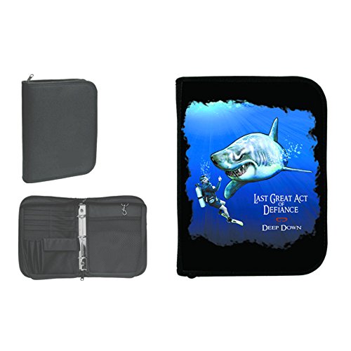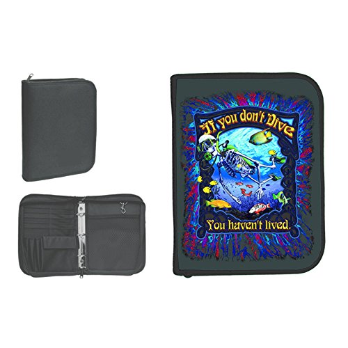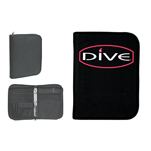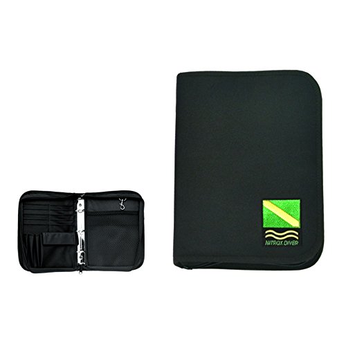 Scuba Diving Log Book and pen holdersQuick snap to hold keys. Front cover print..10inches tall x 7inches wide Threering binder fits PADI inserts Waterresistant Cordura won't scuff or tear 10 Credit Card Slots, 3 Pen Holders, CelPhoneSized pocket, Mesh Pocket with Hook Zips closed to keep logs safe