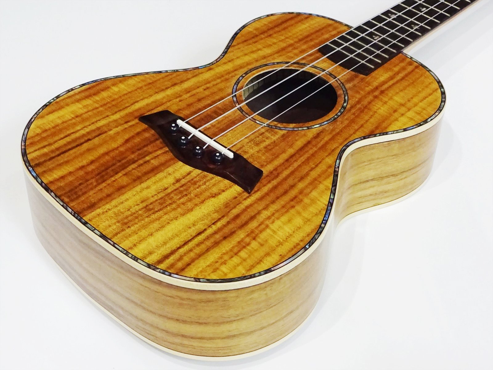 It is a ukulele using a core material with powerful wood grain on the whole body.