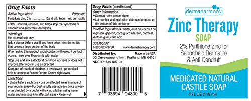 DermaHarmony 2% Pyrithione Zinc (ZnP) Liquid Castile Soap (4 Fl Oz Bottle)