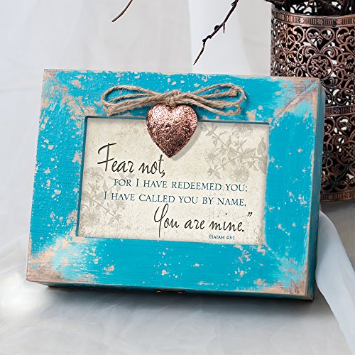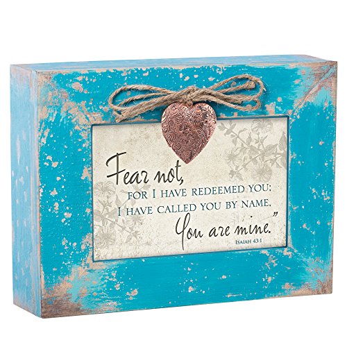 Fear not by Name You are Mine Teal Wood Locket Jewelry Music Box Plays Tune Amazing Grace