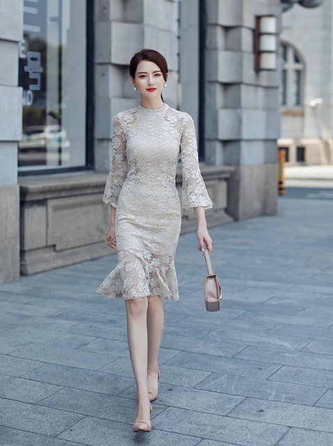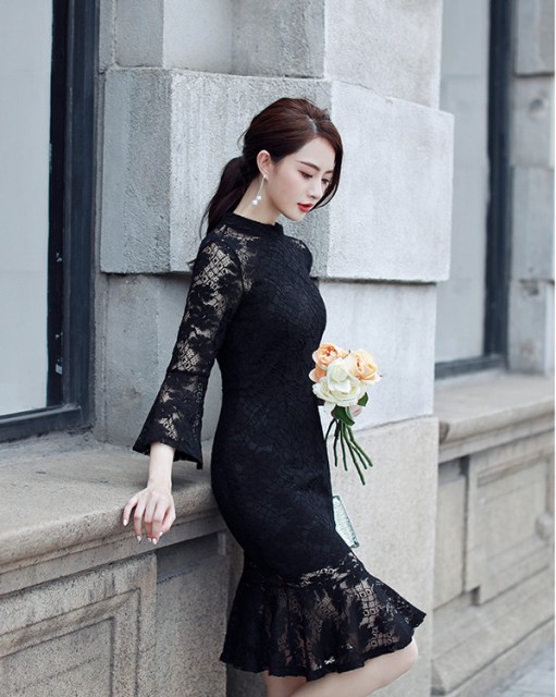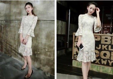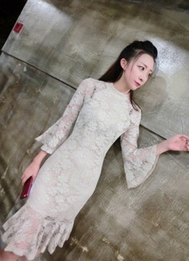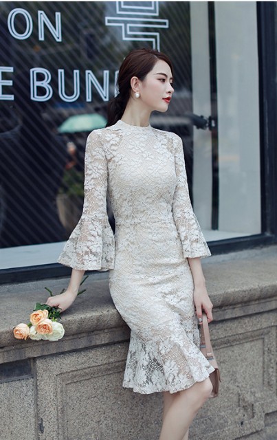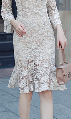 フリルがポイントのレースワンピース。