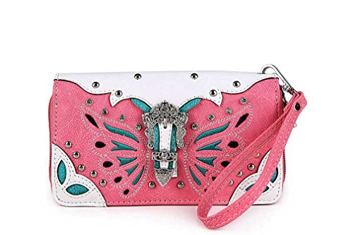 -. Brand : Western LuxeBag -. Color : black -. Department : womens -. Feature : Western butterfly handbag and wallet with wristlet / Plus CA coin purse / Western style butterfly collection / Rhinestones and metal studs on the front / More details in the description -. PackageQuantity : 2 -. ProductGroup : Shoes -. ProductTypeName : HANDBAG -. Size : Medium -. Title : Western Butterfly Purse and Around Zip Wallet Set, Plus Coin Purse