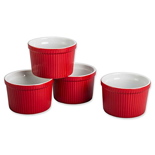 (BIA Cordon Bleu)/Kitchen Dining/Cookware Baking/DIRECT FROM USA/BIA Cordon Bleu (Set of 4) - 12 oz. Porcelain Ramekins Bowls 12 ounce (Red)