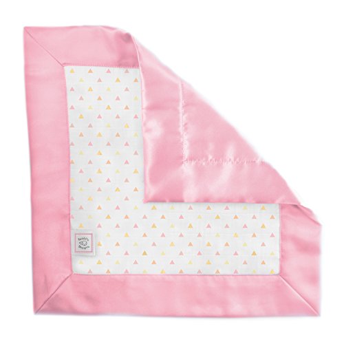 SwaddleDesigns Cotton Muslin Baby Lovie Security Blanket, Tiny Triangles with Satin, Pink