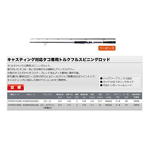 ●낙지(오크《도파스》)전용 스피닝 로드.붙은 낙지를 단번에 끌어 벗길 수 있는 강인한 blank 스파《와》.소형의 낙지 에기에게서 낙지 지그 블레이드계 루어도 경쾌하게 조작 가능.운반에 편리한2피스(동치수 잘라)와 1피스(그립 탈착식)의 2라인업.캐스팅에 대응했 MH액션의 낙지 전용간.