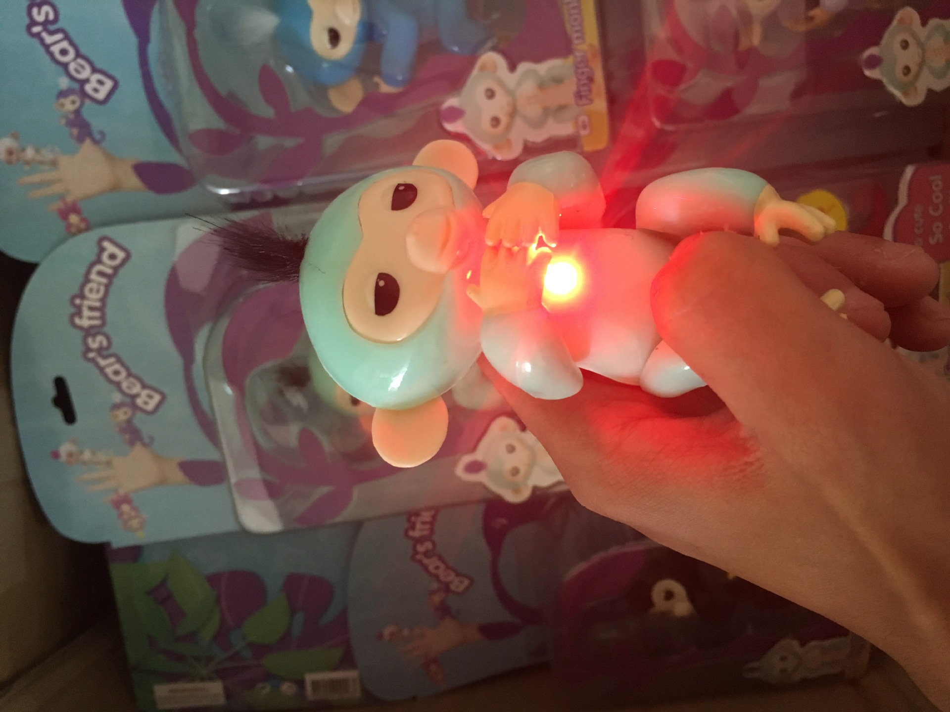带感应功能,振动就会发出多种声音和灯光,眼睛能动,倒挂会闭眼!头,四肢及尾巴为软胶材质,手脚头可手动(非电动)。(红 蓝 紫 黑)自带电池!