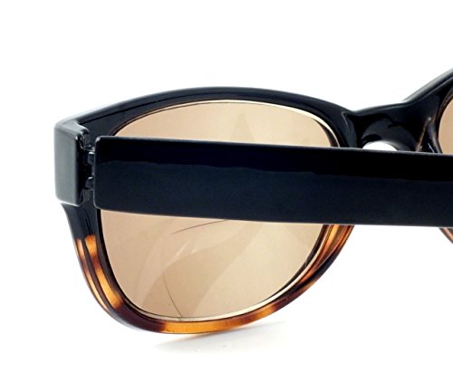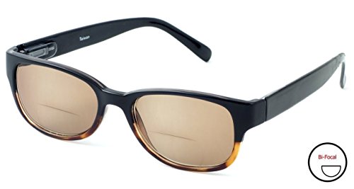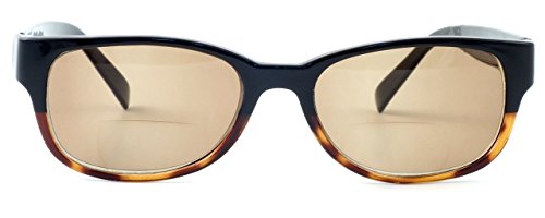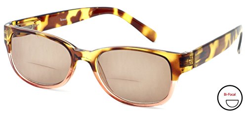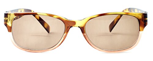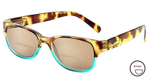 Product Description 4372SB Bi-Focal Reading Sunglasses by Calabria. Stylish European designer influenced frames with a two-tone colorway. Lenses are optical quality with zero distortion and offer a reading magnification at the bottom portion of the lens and plano (no power) for the top. Choose between three beautiful colors: Black, Tortoise Blue, and Tortoise Pink. Frames are spring hinged for added comfort and durability. Each frame includes a soft case that helps keep the readers clean and looking fresh. The lenses are tinted, perfect for driving, lounging at the pool or beach, or any outdoor activity. Expect 100% UVA/UVB Protection. 0