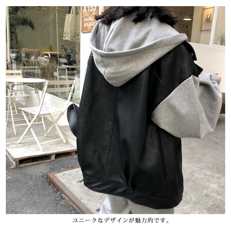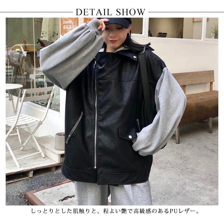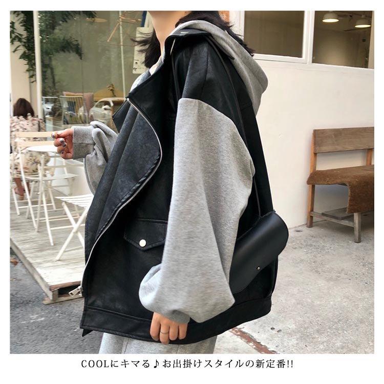 | 大人気の重ね着風ライダースジャケットが登場! そのまま着るだけでスウェットパーカーをレイヤードしているように着こなせます。定番デザインなのでカジュアルコーデはもちろん、マニッシュコーデ、フェミニン系の甘辛MIX・英国風スタイルにもピッタリです。 | |