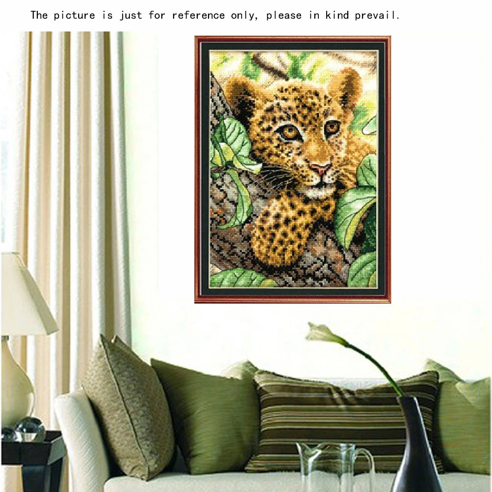 DIY Handmade Needlework Cross Stitch Set Embroidery Kit Printed Leopard Design Cross-Stitching 25 * 33.5cm Home Decoration