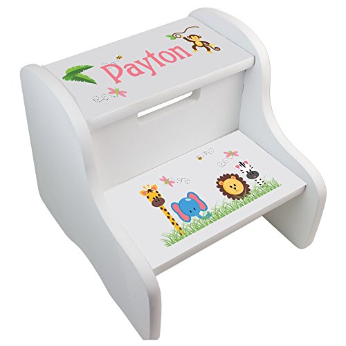-. Title : Personalized Jungle_Animals Girl White Two Step Stool