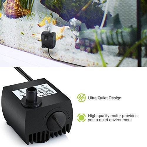 - Ultra Quiet Design & Perfect Motor. The relible and duarable motor does not produce much noise, giving you quiet environment. It can elevate column of water up to 2.6ft ( 0.8m)