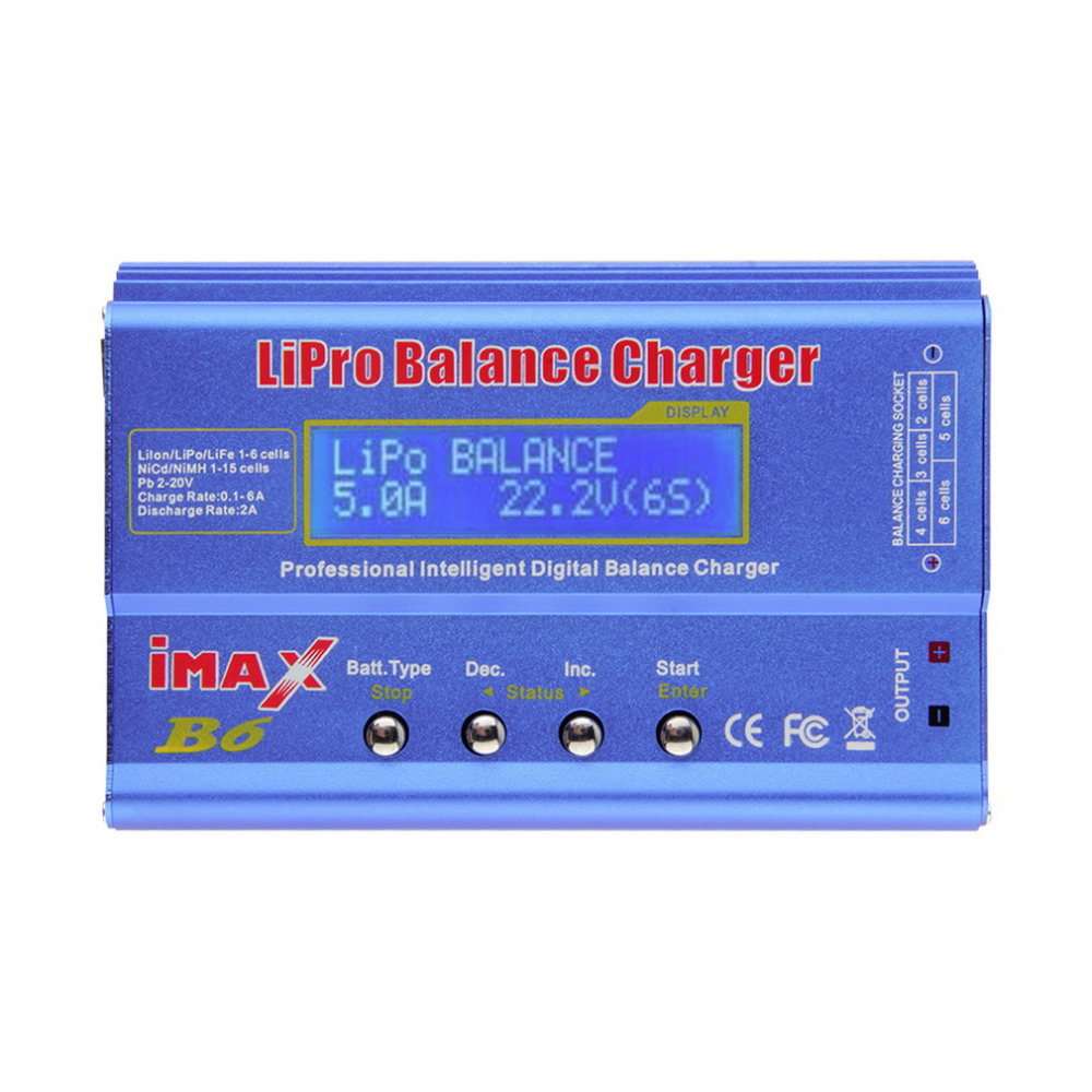 | AC Battery charger iMAX B6 Digital RC AC Lipo Li-polymer Battery Balance Charger Hot Selling Input Voltage: 11~18v Circuit power: Max Charge: 80W / Max Discharge: 5W Charge Current Range: 0.1~6.0A Discharge current range: 0.1~2.0A Ni-MH/NiCd cells: 1~15 Li-ion/Poly cells: 1~6 Pb battery voltage: 2~20v Weight: 580g Dimensions: 133x87x33mm package content: 1 x IMAX B6 Lipro banlance charger 1 x Set Tamiya line |