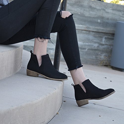 Product DescriptionBrinley Co. Womens faux suede cut-out pinhole round toe boots0
