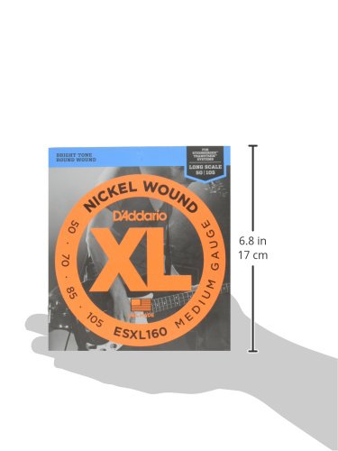 D'Addario ESXL160 Nickel Wound Bass Guitar Strings, Medium, 50-105, Double Ball End, Long Scale