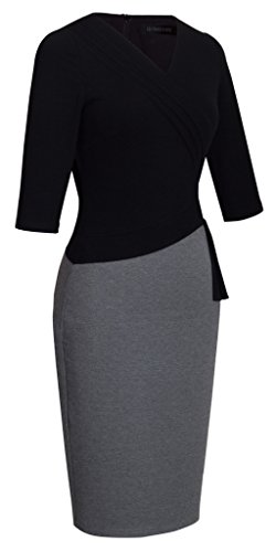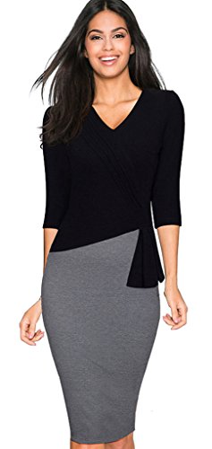 -. Binding : Apparel -. Brand : HOMEYEE -. Department : womens -. Feature : Style: Vintage Peplum Stretchy Stylish Party Business Dress / Feature: 3/4 Sleeve & V-Neck & Knee-Length & A zipper at back / Color: Black & Gray / Occasion: Suitable for many occasions like business, work, party, banquet, cocktail and so on / ***Pls check the size information in the below product description before you decide to buy it!!!(Note:The Generic Amazon Size Chart is not our size) -. ProductGroup : Apparel -. ProductTypeName : DRESS -. Title : HOMEYEE Women's Elegant Patchwork 3/4 Sleeve Wear to Work Bodycon Dress B333